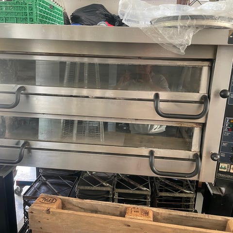 PizzaMaster pizzaovn i rustfritt stål designet for kommersielt bruk. Ovnen har to separate kamre med individuelle kontrollpaneler for temperatur og tid, og er egnet for baking av pizza og andre bakervarer. Produktet har solide håndtak og et robust design for profesjonell bruk i kjøkkenmiljøer.