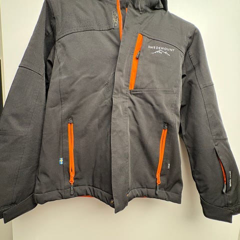 Solid jakke fra Swedemount i svart med oransje detaljer. Praktisk til tur, skole og fritid.