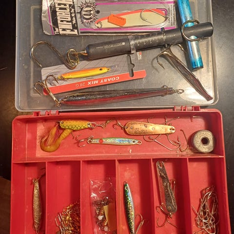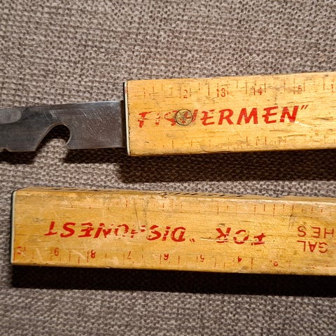 Flytende fiskekniv med korkåpner og boksåpner vintage