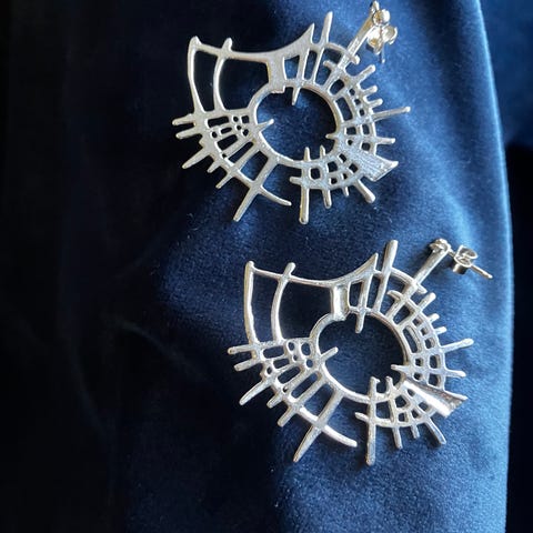 Flotte øredobber fra Gaia i sølv. Vintage brutalistisk design. Nydelige, i god stand. Merket «Gaia» på baksiden og 925