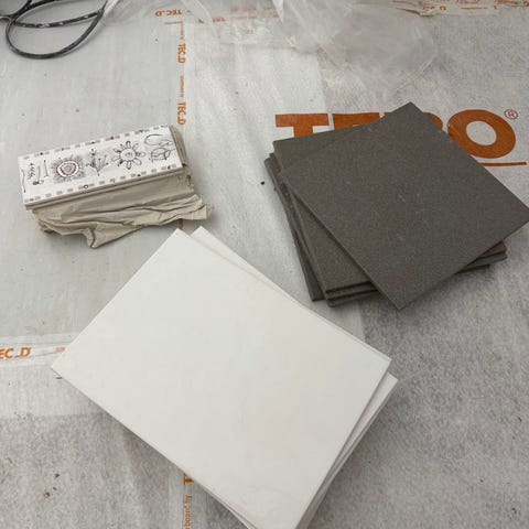En pakke med 30 st / 1,2 kv m gulv fliser ( 20cm x 20cm) fra Elios Ceramica ( Italia) + en pakke flislim