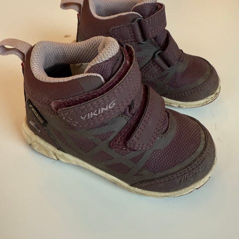 Fine vår/høstsko fra Viking i størrelse 22. Goretex, og med gode såler. De har vært mye brukt, men er likevel veldig lite slitt, god kvalitet. 🙂