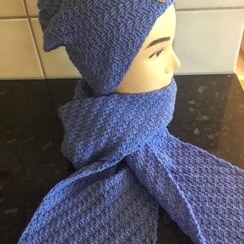 Sett fra italienske Vizio, mørk blålilla farge. Små paljetter diskrét utover luen. 38% superkid mohair og 38% superfine alpaca.