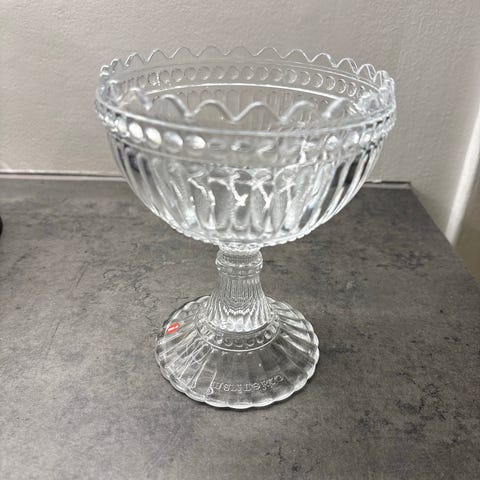 Iittala glasskål med dekorative mønstre. Laget av glass med gulaktig tone. Egnet som dekorasjon eller serveringsskål.