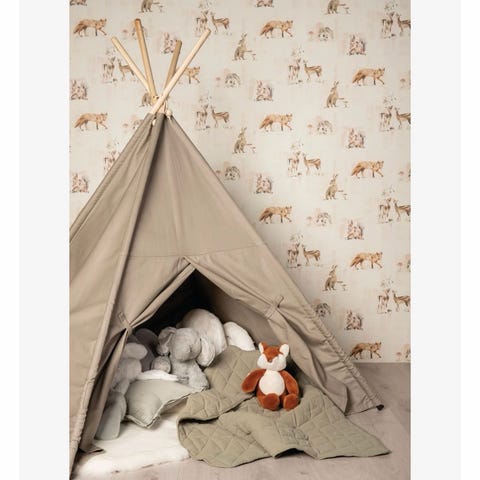 Alice & Fox Barnetelt. Telt med ramme i tre og stoff i rosa og hvit stripet mønster. Egnet for bruk innendørs som leketelt for barn.