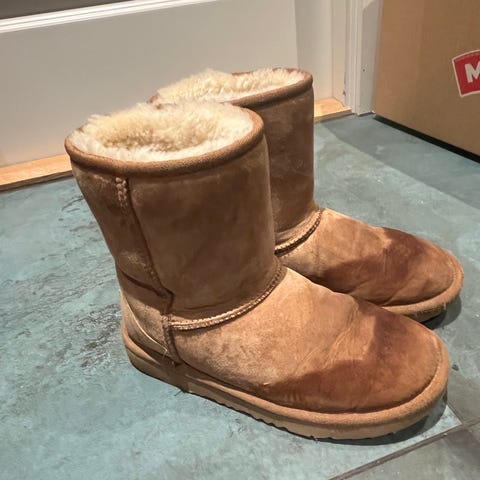 Pent brukte ekte UGG sko str USA 5, EU 35 (passer til 36 også) selges billig pga en kutt på en av støvlene som er sydd nå, se på bildet nr 2