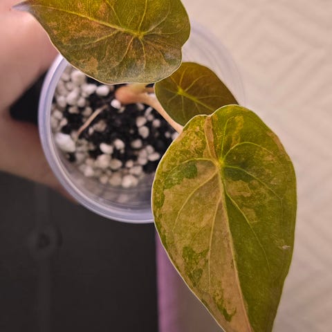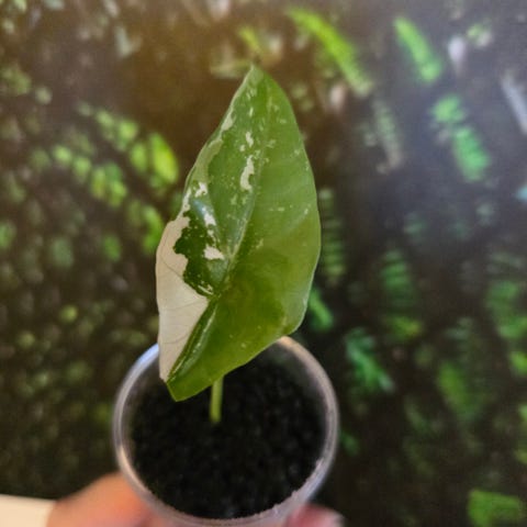 Nydelig stor og fin Alocasia Simpo Albo morplante selges🌿 Denne har vokst å blitt enda større og finere siden bildet ble tatt i sommer😍 Varigeringen er så nydelig at den nermest tar pusten fra deg💚 Holdt perfekt og stabil varigering på ALLE blader og skuffer aldri når nye blader kommer. Denne er virkelig en av di fineste Alocasia'ne jeg har sett og vil bli ett naturlig blikkfang i etthvert rom💚🌿 Den har gitt mange knoller som har blitt til nydelig varigerte babyer alle sammen, er en av disse babyplantene fra denne jeg selv skal gro stor igjenn. Derfor selges denne👍🏼