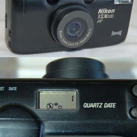 Den har en brennvidde tilsvarende 33 mm, innebygd blits og optisk søker.