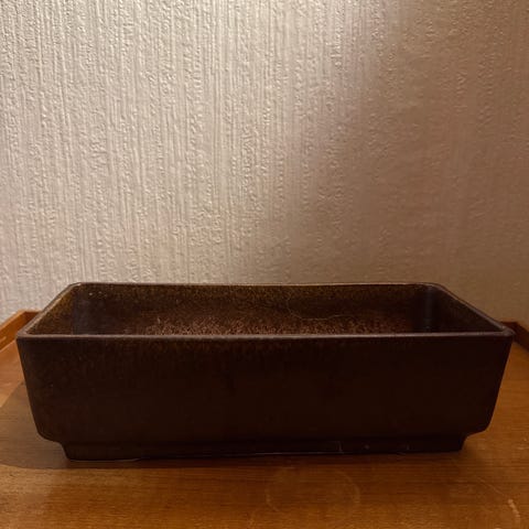 Høyden er ca. 11 cm og diameter ca. 13 cm, innvendig er det fin krakelering i glasuren men ingen nagg eller sprekker, perfekt til juleblomster som julestjerne, svibler eller små grantrær.
