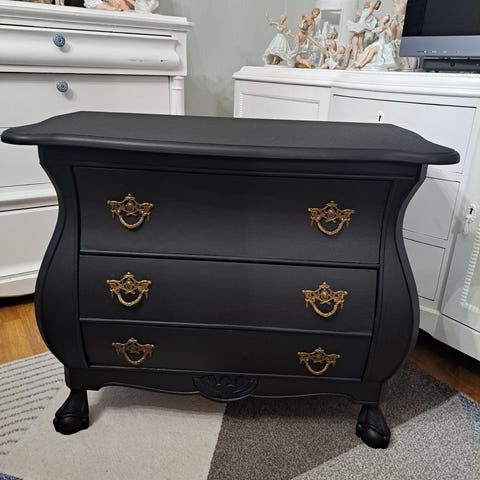 Dette er en eldre kommode som har stått i denne boden i over 30 år og den trenger en kjærlig overhaling. Den bærer preg av et langt liv