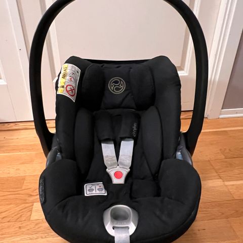 Cybex bilsete med isofix base. Setet er svart og designet for å sikre barn i bil. Isofix basen gir enkel og stabil montering i bilen. Passer for spedbarn og små barn til 15 mnd gamle Max 13 kg.