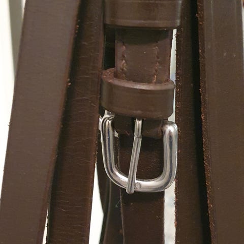 Helt nye lærtømmer i fantastisk mykt skinn laget i USA av Amish selges. 4.5 lang. Svinger i enden.