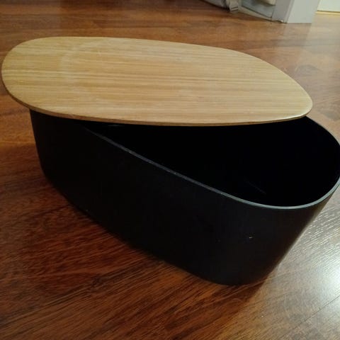 Brødboks 35x21,5cm stål, svart 4 sett skjærefjøl, caddy 2 rom oppvask stativ stål