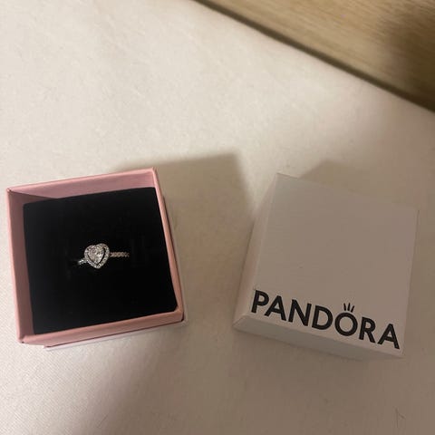 Sølvring str 53.5 pandora. Steiner rundt hele