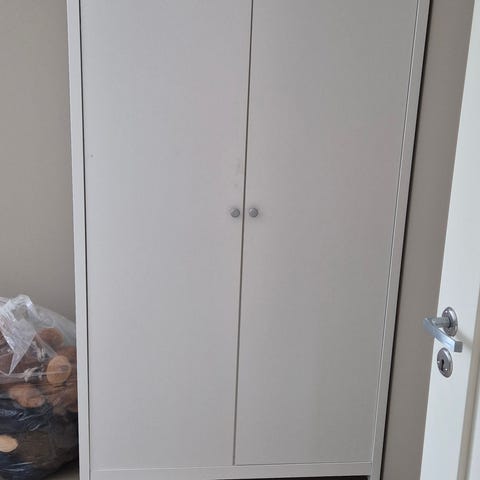 Pene hvite skap selges i seksjoner hver seksjon består av 12 skapdører . Har fire seksjoner. Kan selge samlet til 3000 kr