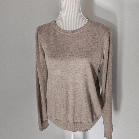 Høyhalset brun genser i 100% merinoull, str. M, lite brukt