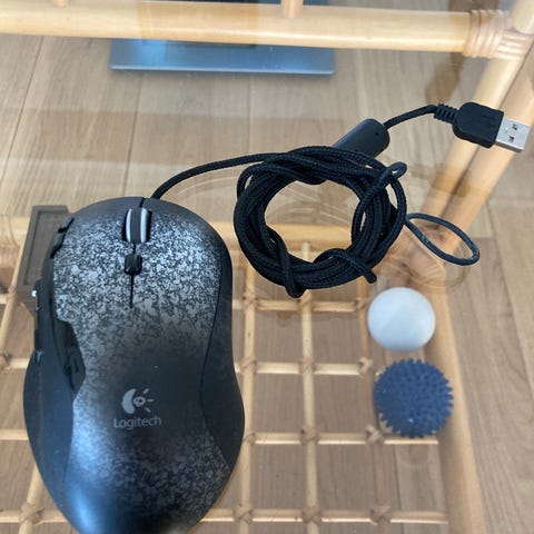 Lite brukt Logitech trådløs mus tilleggsutstyr med USB-mottaker. Kompatibel med ulike datamaskiner for trådløs navigasjon.