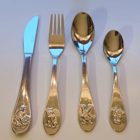 Barnebestikk i stainless steel med dyremotiv. 3 deler