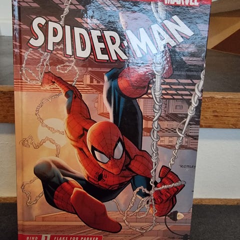 Marvel Spider-Man Fantastiske fortellinger tegneserie med fargerike illustrasjoner og historier om Spider-Man og andre karakterer fra Marvel-universet.