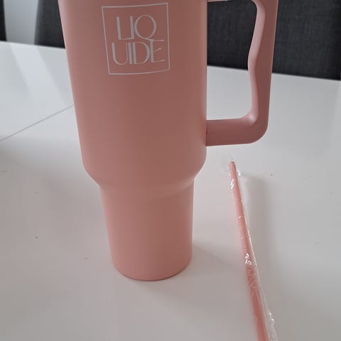 Nydelig termos i kule farger med silikon sugerør.