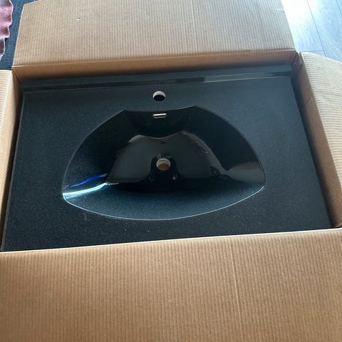 servant med dimensjoner 600x480 mm i Evermite hvit materiale. Servanten har sentrert avløp.