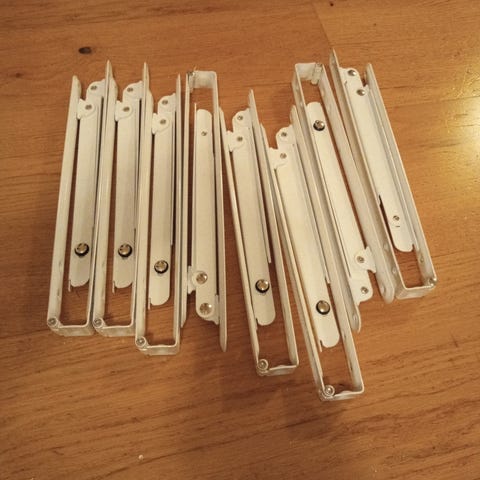 Den ene mangler plastplate i munn-partiet, men det har gått helt fint. Den vil ev. ha sin litt skarpere metallkant mot undersiden av hylleplaten, men fungerer like godt - og ikke synlig feil.
