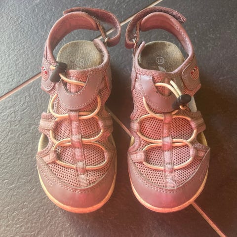 Viking barnesandaler i størrelse 30, rosa farge. Sandalene har justerbare stropper og er laget med pustende materiale for komfort og brukervennlighet. Brukt av ett barn.