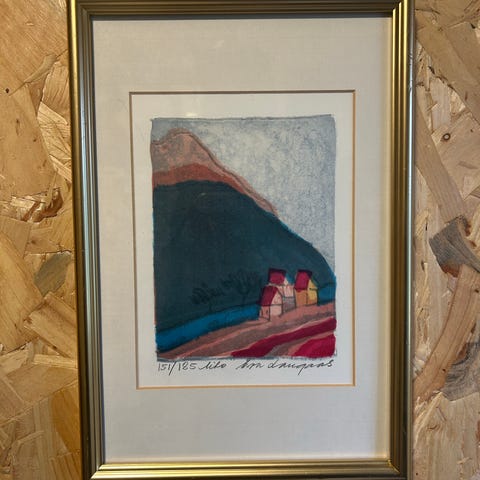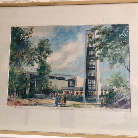 Litet litografi signert Finne,,totalmål inkl. ramme ca 21¤16cm.......