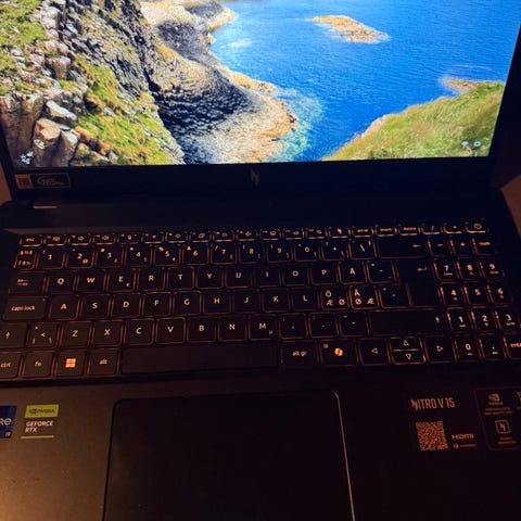 Acer ANV 15-51 er i god teknisk stand. Alle funksjoner og komponenter fungerer som de skal, og ingen reparasjoner er utført. Kun utskifting av termopasta er gjort. Kabinettet har noen små, knapt synlige riper. To taster mangler på tastaturet, men enheten fungerer fortsatt uten problemer. Garantien er utløpt. Leveres kun med original lader. Ingen eske, dokumenter eller ekstra tilbehør følger med.