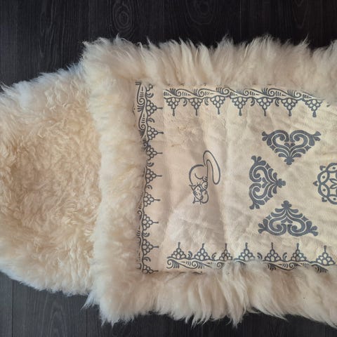 Gode varme vognposer av saueskinn. Passer like godt i pulk som vogn. Varer i mange generasjoner.
