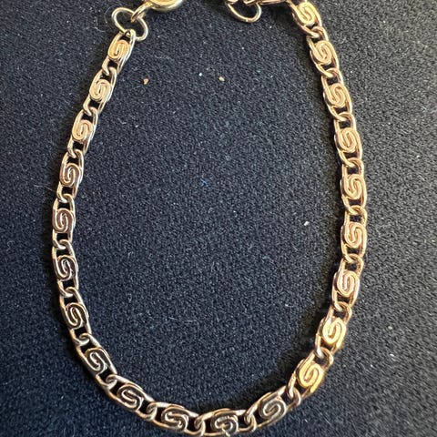Selger to elegante gullbelagte armbånd i barne størrelse. Armbåndene har et flott, detaljert design med fargede steiner, og fremstår som svært pene med minimal bruksslitasje. Perfekt til både hverdagsbruk og spesielle anledninger.