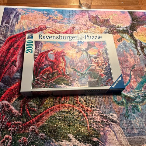Puslespillet har lagt for lenge i skuffen nå, så fortjener gjerne en eier som vil pusle det ferdig.