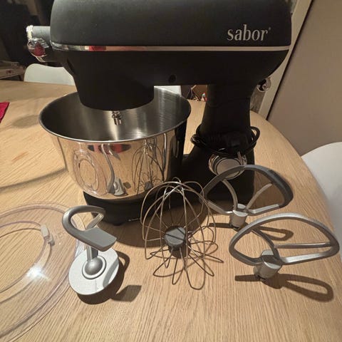 Sabor Ultimate kjøkkenmaskin 6,5L frostet kjøkkenmaskin i svart matt farge med rustfri stål bolle. Leveres med flere visper og deigkrok for ulike kjøkkenoppgaver. Må hentes.