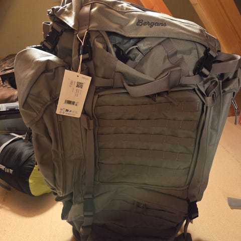 Solid ryggsekk med noen bruksmerker. Avtakbart topplokk og sidelommer. Ble i sin tid valgt foran Norrøna sin modell fordi denne kan åpnes helt opp med frontlomme.