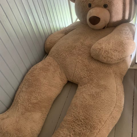 Selger en stor og myk kosebamse i god form. Den er svært stor (rundt ca. 1,5 meter) og passer perfekt som dekor, gave eller kosebamse for barn og voksne.