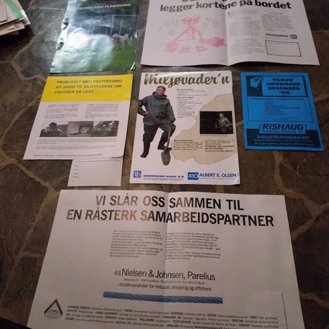 Div reklame brosjyrer selges 100,- pr stk + evt porto.
