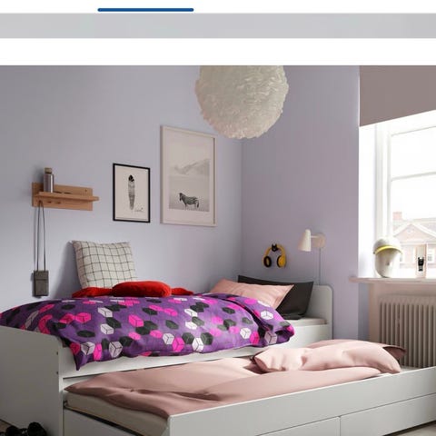 2 stk puffer og ett gulvteppe i serien "Kitchen tiles/blue sage" av Lorena Canals.. Kjøpt nytt via Jollyroom. Pent brukt i loftstue/lekerom. Kan ikke finne flekker, men er naturlig noe møkkete etter bruk på gulv. Har ikke vasket dette selv, men er "washable". Se merkelapp . Teppet er 120×160 cm.