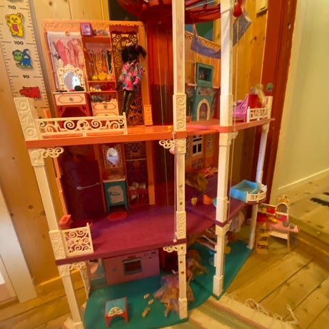 Pent brukt Barbiehus. Med møbler.