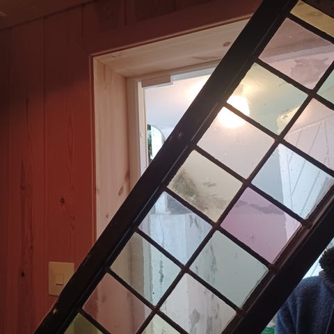 Trapp fra 70 tallet, helt i orden. Kan bli fin. . Trapperommet er 170x207 og fra gulv nede til gulv oppe er det ca 247.5