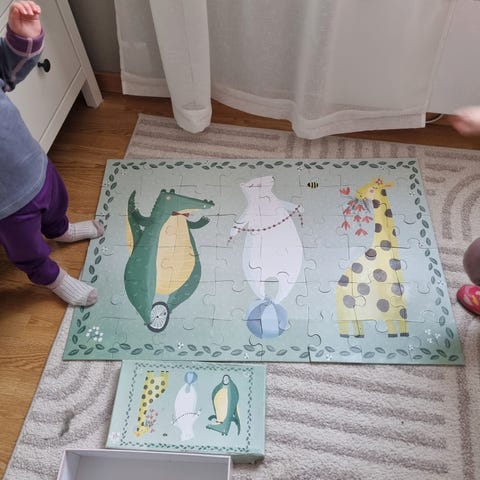 Djeco Enhjørning puslespill med 36 brikker. Puslespillet har form som en stjerne og passer for barn over 4 år. Inneholder illustrasjoner av enhjørninger og eventyrtema.