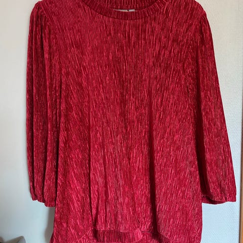 Lilla kortermet overdel/topp med glitterstruktur i stoffet. 60 % nylon, 35% lurex og 5 % elastan.