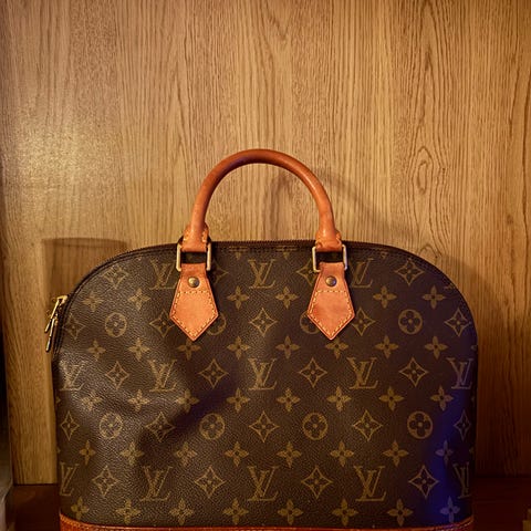 Louis Vuitton Dame veske laget av lær. Vesken har skulderrem og klassisk design med monogrammønster.