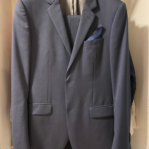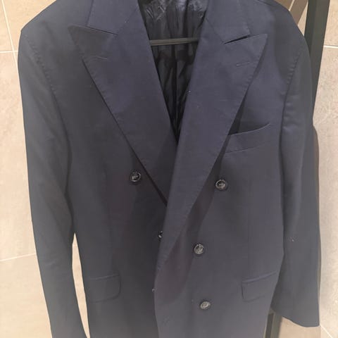 Mørkeblå dress fra Oscar Jacobson, kun brukt et par ganger. Størrelse blazer: 48, størrelse bukse: 50.