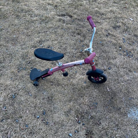 Pent brukt Rookie gåsykkel selges. Sykkelen har fire hjul for stabilitet og et sete tilpasset små barn. Egnet for barn som lærer balanse og koordinasjon. Må hentes
