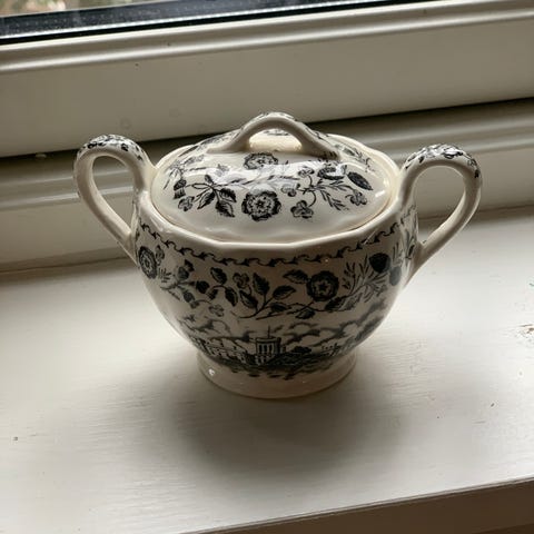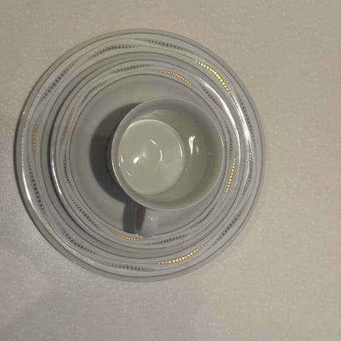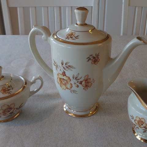 Kaffeservice til 8 personer med 2 fat. Sukkerskål har 1 knust håndtak som er limt.