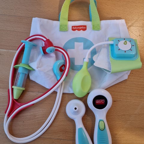 Et lite sett med utstyr til doktor-lek.
