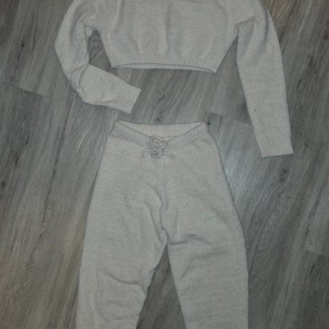 Nydelig, supermykt chenille-strikkesett med cropped genser og høylivsbukser med knyting i livet. Perfekt til både hjemmekos og hverdagsbruk.