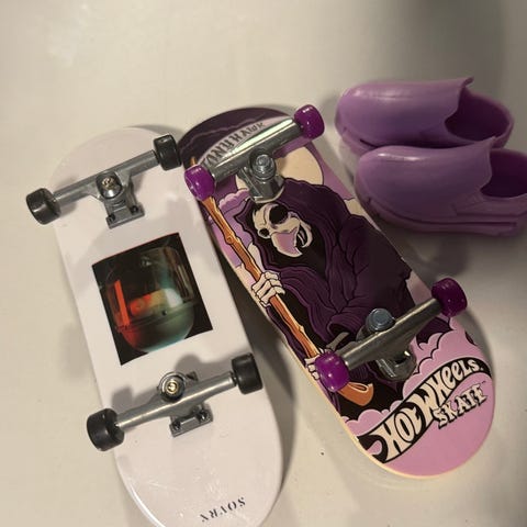 Hot wheels skateboard bed belysning. Har stått i en kjeller lenge. Funker som det skal. Kulelagre går fint.