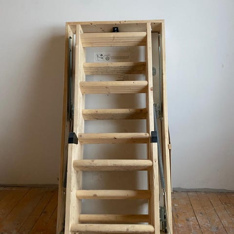 Dolle Bergen hemsstige m. håndlist hvit/gran selges kr. 3500,-. Trapp ble montert, men vi skulle ha ubehandlet tre på alle deler. Trappen er kuttet til 255 cm ved montering. Utslått på skrå for bruk, vil den bli på ca. 235 cm. Så hvis etasjeskille/høyde fra gulv til gulv er på 230-235 cm eller lavere, så vil denne kunne brukes. Ligger i originalemballasje.