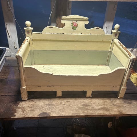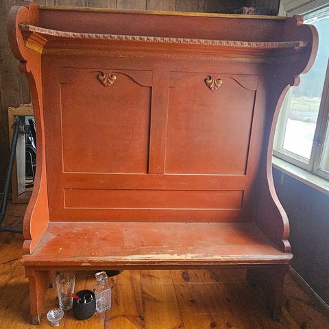 Antikk trebenk med polstret sete